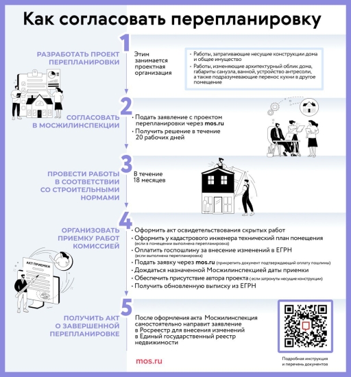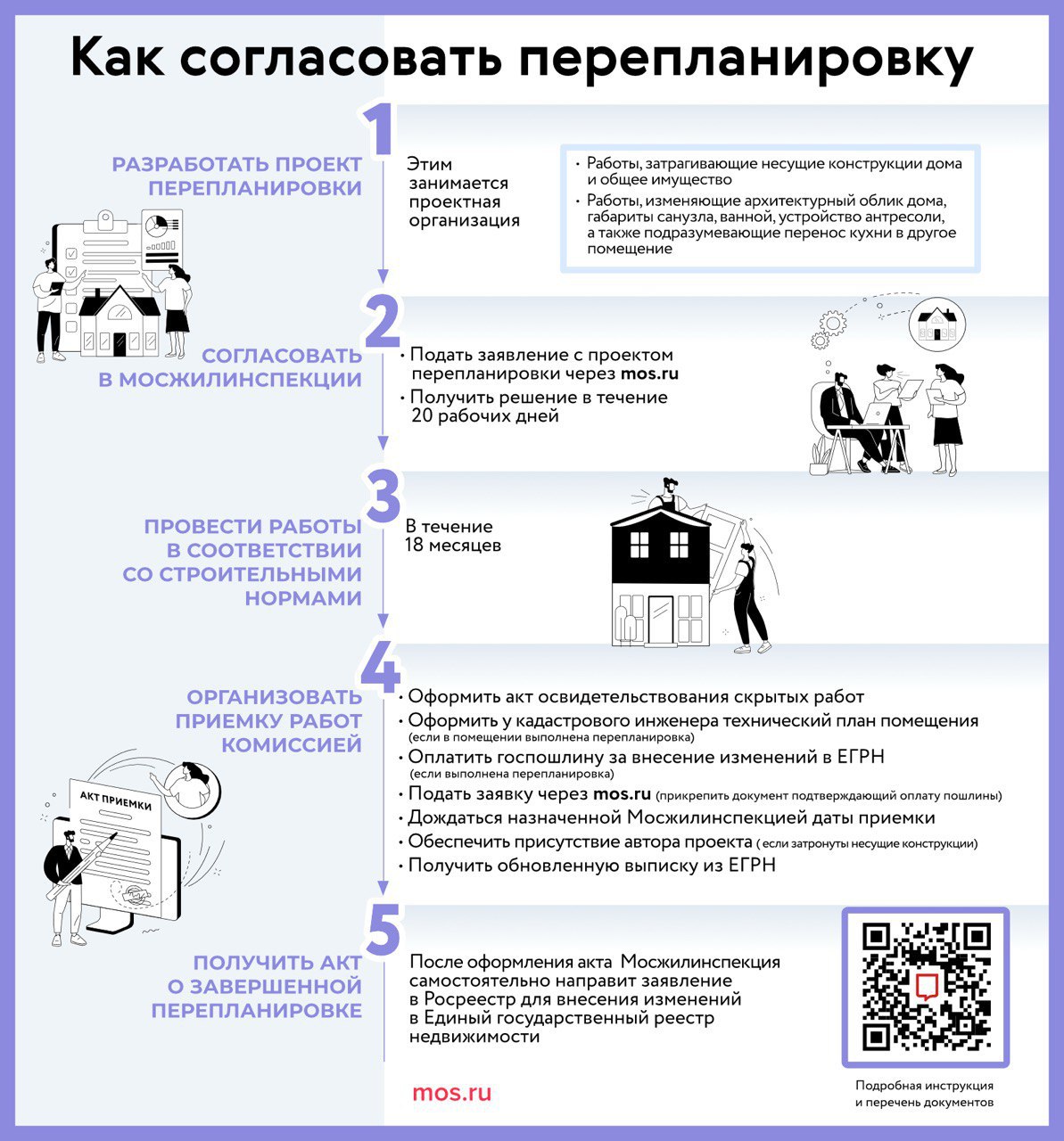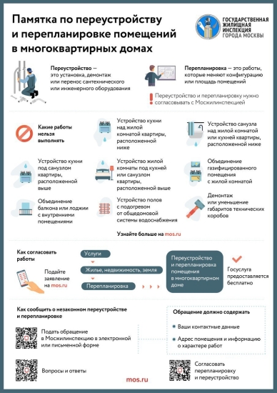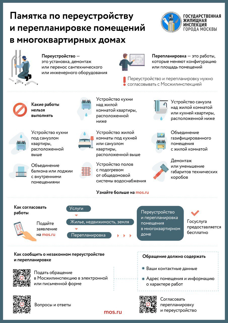 Делимся с вами памяткой по переустройству и перепланировке помещений, а также инструкцией по согласованию перепланировки.