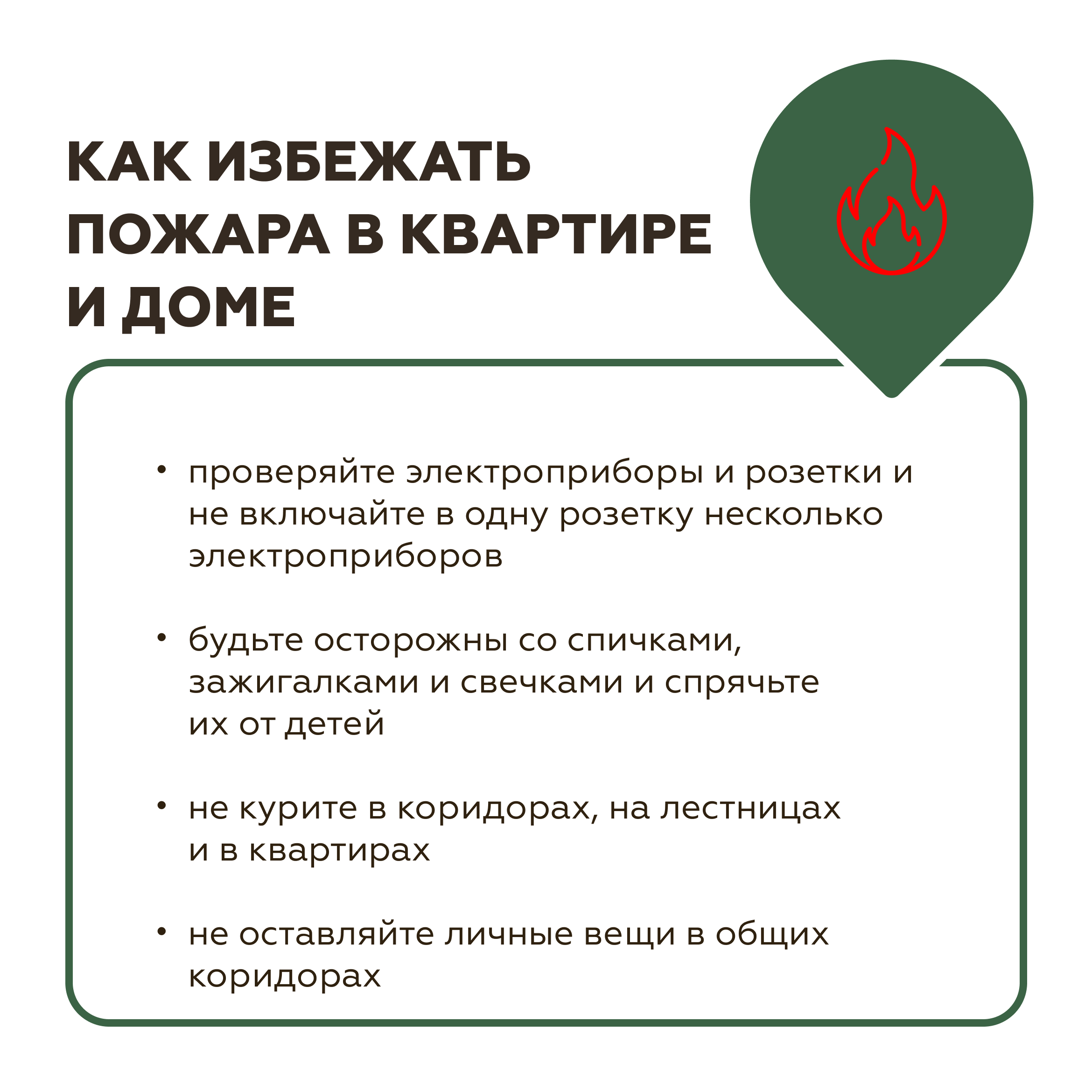 Чтобы не подвергать опасности себя и своих соседей, не забывайте соблюдать правила пожарной безопасности.