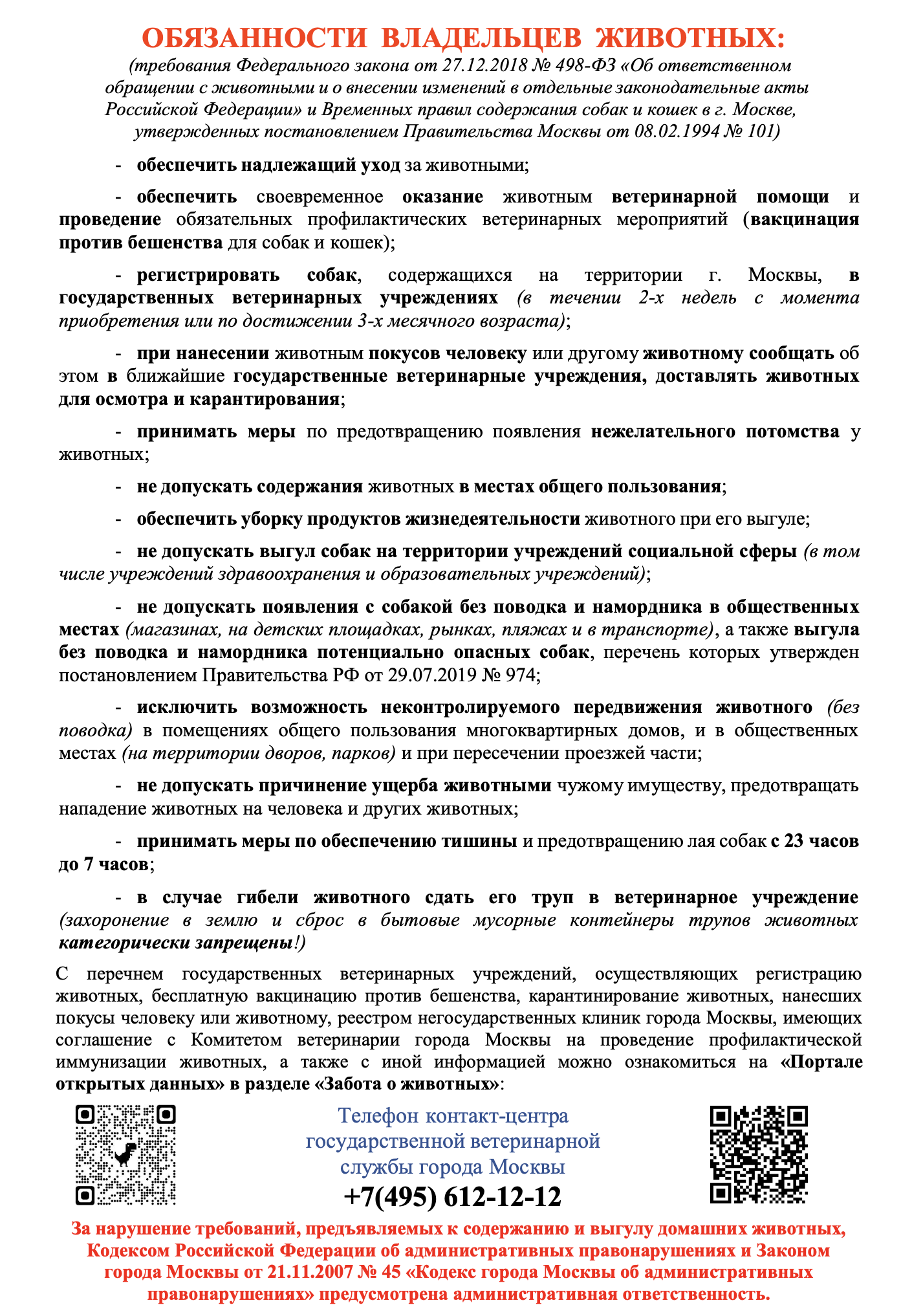 Делимся с вами обязанностями владельцев животных, а также правилами содержания и выгула.